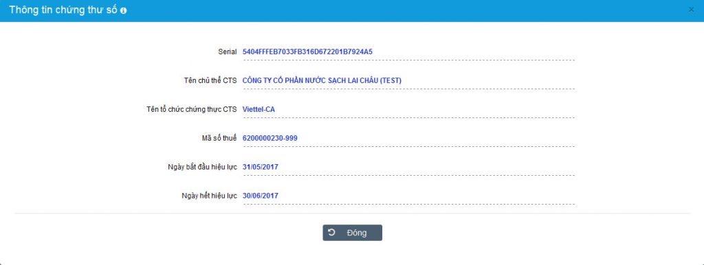 Bước 3: NSD nhấn nút [x] hoặc nút Đóng để đóng cửa sổ xem chứng thư số.