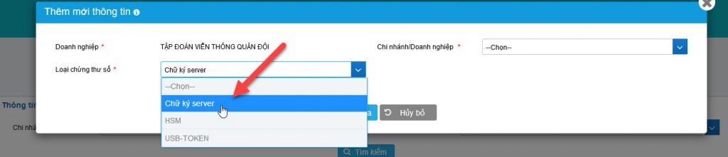 5. Chức năng Thêm mới thông tin chứng thư số – Nếu chọn Loại chứng thư số = Chữ ký Server